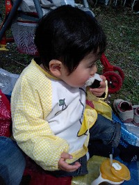 先週の疲れで、たっぷり寝たい土曜日の朝。みずに6時に起こされる・・・でも、無理矢理二度寝させて、一緒に9時に起きました!笑今日は、朝から、赤ちゃん広場の1周年イベントに行ってきました。平日に、週一回くらい通ってたK広場のイベント。もう行くことないんだ・・・と寂しく思っていた時に、葉書が届いて。土曜日という事で、行くことが出来ましたスタッフの人からのお話や、手遊びの後、人形劇団「ねこじゃらし」という所が、来ていて、3つも人形劇なんかをしてくれましたいつもなら、ガサガサ動きたがるみずなのに、なぜか今日は、私のひざでおとなしくしていました。いきなり保育所パワーか?笑保育所でも、先生の膝の上で、おとなしくパネルシアターやエプロンシアターを見てるらしいの。大人でも楽しめたよ~それに、私より、先に職場復帰したYちゃんとママも来ていたり、来週から職場復帰するS君とママも来ていたりで、ワーキングマザートークで盛り上がったし、これからあんまり会えないからという気持もあり、長々と話してました。スタッフの方々とも、たくさん話せました。他にも、たくさん友達に会えて、記念撮影までしちゃって、ほんと楽しかった。去年のGW明けくらいから、お世話になったK広場。本当に、ありがとうございました。いろんなイベントをしてくださって、本当に楽しかったし、友達もたくさん出来ました。私も仕事と育児頑張りますね!夜は、歩いて15分くらいの所に、家族で花見に行きましたカセットコンロと、焼肉セットを持って!まわりにも、団体さんなんかが、たくさんいて。去年も、夜に、みずを連れて外で焼肉したなぁ。みずは、ベビーカーで寝てたけど。その前は、妊婦で、やっぱりお腹の中のみずも一緒に来たわ~外で食べる焼肉は最高!もちろん発泡酒も持って行ったよ。おにぎりもね!みずも、外で美味しそうにパクパク!小さいおにぎり3個も食べてたよ。少し肌寒かったので、すぐ帰ってきました。明日も、花見に行くよ。明日は昼間にね。あんまり週末飛ばすと、仕事しんどいので、早めに行って、早めに帰ってきます!