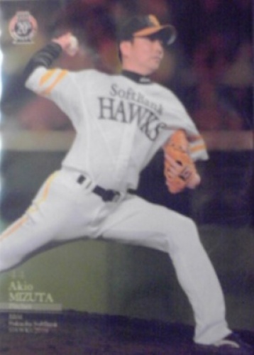 前回の更新から4か月。前回更新の時には発売が間近だったソフトバンク10周年の水田さんのレギュラーカード。ようやく入手しました。今回は直筆が封入される可能性がちょびっとあっただけに、封入が見送られて、自分的には残念でした。もし封入されたら、”清水の舞台から飛び降りたつもりで”(この言い回し、死語になりつつあるのかもしれませんが)、カートン勝負に出てもいいかなと思ったりしていました。次回のホークス系の周年ものはホークス75周年?、ソフトバンク15周年?あたりでしょうか。その頃には水田さんの直筆の封入の可能性がさらに低くなっていそうな気配。それよりも先に、カード収集熱が冷え切ってしまいそうな感じです(笑)