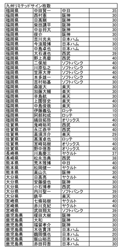 本日付で、BBM九州リミテッドの直筆サインカードのリストが発表されました。各県ごとにそれなりの人数がラインアップされていますが、やはり福岡県が多いですね。8月下旬に発売予定の「OSAKA LIMITED ナニワ魂!」に封入される直筆サインカードの選手数も、今回の九州リミテッド並になるのでしょうか。大阪出身のプロ野球選手は現役選手だけでも約80人。「ナニワ魂!」でカード化の対象となるのは1961年以降の大阪出身の選手ですが、軽く300人を超えそうですね。うーん。どうやら今回も、水田さんのカード化に暗雲が立ち込んできたようです(笑)