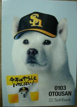 タイトルだけ見ると、なんだか暗証番号みたいですが(笑)、ホークスのマスコット、お父さん(白戸次郎)こと、カイ君です。お父さんの背番号は「0103」。0(お)10(とう)3(さん)、のゴロがそのまま背番号になっています。以前の日記でご紹介した際には、お父さんの配布カードは4枚とお知らせしたのですが、新たに1枚見つかりました。それがこちら↓ちなみに前回ご紹介した1枚はこちら↓2枚並べると、こんな感じです↓向いている角度がちょっと違います(笑)今シーズンの開幕戦は3月25日。あと1か月とちょっとです。お父さんがどんな形でヤフードームに登場するのか、いまから興味津々です。