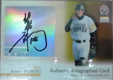 先週、トレードが成立して届いたのがこちらのカードです。BBM2010ソフトバンク 猪本健太郎 30枚限定直筆2008年オフのドラフト育成枠で入団した猪本選手です。たけし軍団の井手らっきょさんが関わっている野球スクール「プロフェッショナル・ベースボール・アカデミー」出身で、同スクール初のプロ野球選手とのこと。最近のドラフトでは、独立リーグから入団する選手が出るようになりましたが、独立リーグや野球スクールの存在がもっと注目されて、プロ入りの門戸がさらに広がることを願っています。さて、今回のトレードでは下記のカードも入手しました。どちらかというと、こちらがメインかも(笑)水田さんの100パラです。21枚目になりました(笑)カードをご提供いただいたI様、どうもありがとうございました。