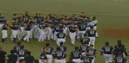 ホークスやりましたねー!(かなり反応が遅いですが・・・汗)この半年ほど、ブログも完全休眠・凍結状態でしたが、ホークスのパリーグ制覇&日本一に触発されて、ようやく解凍?できました。今シーズンのホークスの試合は、テレビ観戦をする機会も殆どなく、試合当日の夜のスポーツニュースか、翌日の新聞ではじめて勝敗を知るといった状態が続いていました。水田さんが打撃投手になってから、何というか、応援の熱もちょっと下がり気味でした。いやー、それにしても日本一!見事でした。そういえば日本一になったのは、ソフトバンクになってから初めてだったんですね。今さらながらですが、知りました。ハイ。ファンとして恥ずかしい限りです。それはさておき、早速、水田さんの姿はと・・・・・・いました!画面の右端のほうの背番号「106」。胴上げに向かう後ろ姿です(笑)本当はもうちょっと早く日記をアップする予定だったのですが、水田さんの姿を探すのに少し手間取りました。明日からまた休眠状態に入ると思いますが、時々、思い出したように更新するかもです。引き続き、どうぞよろしくお願いいたします!