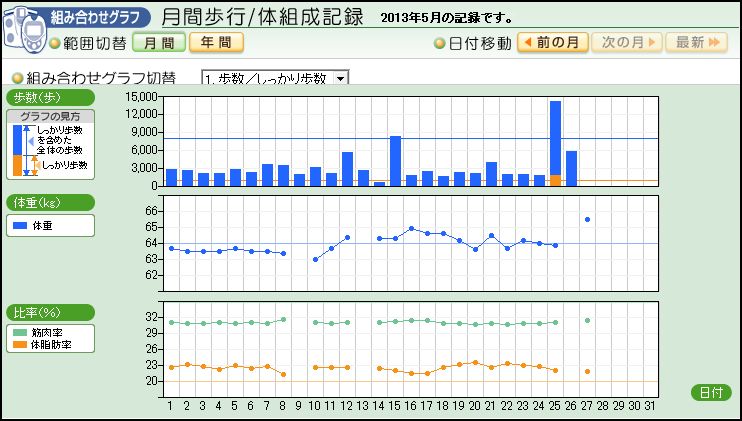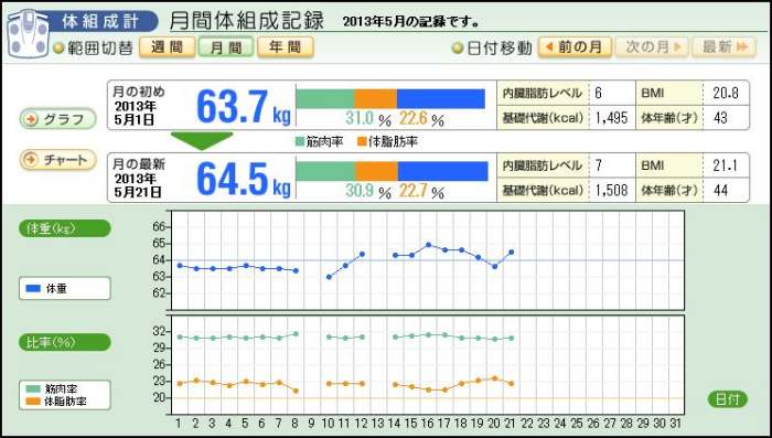 せっかく体重を理想の64キロ以下に抑えてきたのに昨日は炭水化物を取り過ぎてしまった内臓脂肪レベルが6から7に戻ってしまった。奥さんはこの数値が2だ。オイラには絶対むりだな。奥さんみたいにダンスするかってか。今夜ウオーキングしようかな。昨日はアクセスが多かったなぁ、プロテックさんから引っ張られてきたのかしら?