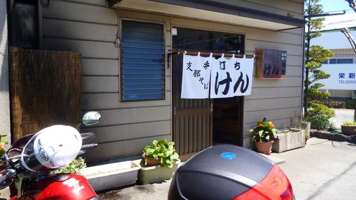 ネギそばがうまいらしいと聞きつけて食べてきた。支那そば けん は11時に開くのでちょっと早かったので河口湖でブラブラとしてた。そして11時ぴったりに到着。店のオヤジがちょうど暖簾を出すときだった。入り口の左にYBR250を止めてもいいかと指をさしたら OK の合図が返ってきた。レスポンスがいいオヤジだお勧めは何? と問うと ネギそばだなぁ~ と。ならばそれをちょうだいな。このオヤジさん、よく話す。オイラと合いそうそしてネギそば650円が出てきた。う~ん、ネギは炒め過ぎて形がない。食べてみた。おっとピリ辛なのね。なかなかのピリ辛ね。この辛さはオヤジさんのポリシーなのね。麺は自家製なんだよ~と。なるほど。悪くはないな、クセになるかもだな。こんなピリ辛のスープは体に悪いから残せよ~と思いながら食べていくが悪魔がささやいて完食してしまった。イカン、クセになりそうごちそうさま~、またいつか来るよ。いつになるかなぁ~ここは地元客がほとんどなのかな?どんどん客が入ってくる。地元のジイサンが多い感じ。けっこう流行ってるみたい。意外だね。まぁ、☆3つだな。