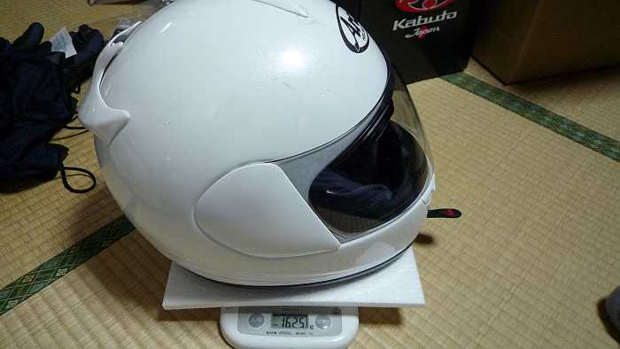 5/20に注文したヘルメットが届いた。これからはこのヘルメットでツーリングだ。軽い、たしかに軽い。量ってみた。まずは今まで被っていたアライのフルフェイスだ。1625gだった。そしてエアロブレイド3 ステラート トリコロール はというと1304gだった。321gも軽い。これは頭が楽そう。ついでに、これから暑くなるとアドレスV125に乗る時に被るジェットヘルは959gだ。さすがに軽い。さすがジェットヘル。万一の時は心配だけど。エアロブレイド3 ステラート トリコロール は蒸れ対策も良くできてそうだ。ちょっと派手だったかしらキズ付けないように大切に扱おう。