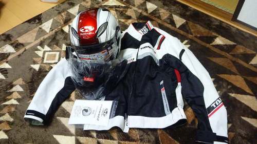 雨なので車で行ってきた。二輪館でOGKのヘルメットと夏のウエアを見に行った。通勤に使っているヘルメットはジェット型だが通気口がなくて暑い。日差しがまぶしいので二輪館で買ったミラーシールドを付けて走っている。しかし暑いのでヘルメットそのものを買い替えたくなってきた。OGKが軽くていいのでジェットもOGKがいいかなと。ADVND2というのがあって単色のものから色が付いているものまでいろいろあった。オイラが気に入ったのはちょっとカラフルなCITTA パールホワイトというもの。今買うとスモークのシールドがオマケで付いてくるんだと。いいねぇ、でも単色のよりも高い、21000円ちょっとするみたい。もちっと負けて~。するとオネエサンがちょっと負けてくれた。せっかくだからRSタイチのウエアも見ていく。クロスオーバーメッシュジャケットがいい感じ。これも買うから負けて~とおねだりすると全部で34000円ぐらい。もちっと負けて~。オネエチャン、レジで打ち間違えて33000円と打っちゃいなよ~なんてずうずうしいオイラ。結局33000円でお買い上げ。ネットのほうがもっと安そうだけど、見て買う安心感があるからいいとしよう。ネットで買おうとしてもサイズで悩んで買うのが遅くなるし。買っちまえ~。赤と白と黒のバランスがいい感じ。帰宅してレシート見たらヘルメットが19000円、ジャケットが14000円となってた。内訳はなんでもいいや。奥さんはバイクの服なんかより普通の服を買ってきたほうがいいというけど普段着なんて今あるので十分だし。服なんてなんでもいいし、着てればいいや秋冬もRSタイチなんで胸のプロテクターが使いまわせるというオマケ付はラッキー。ピンロックも付けられるみたい。冬の曇り止めにいいかな。