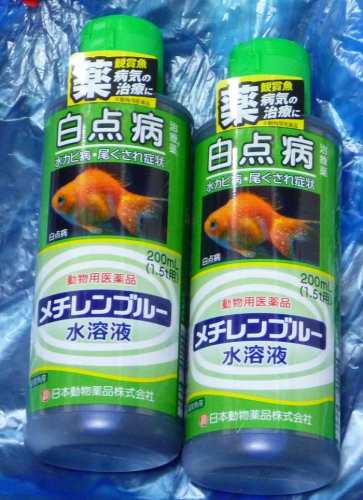 白点病・尾ぐされ症状・水カビ病の治療に!動物用医薬品 メチレンブルー水溶液 200mL(1.5トン用) 関東当日便ただいまオイラの部屋の金魚たちは薬浴中。グリーンFが終わってしまったので再び使い慣れたメチレンブルーにした。安いしグリーンFがメチレンブルーよりも優れているかわからなかった。グリーンF1本の価格がメチレンブルーなら2本買えるからこれを買うのがベターだな。