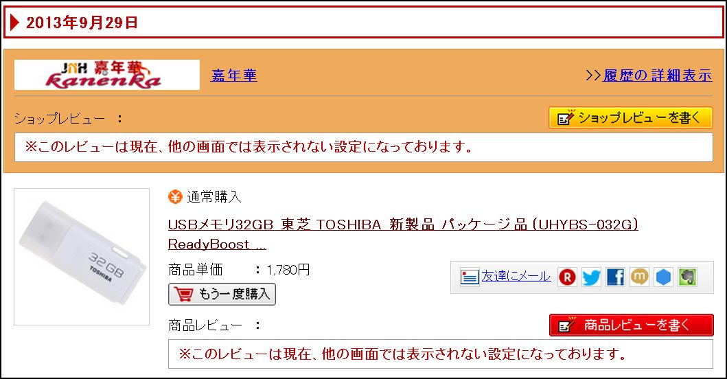 10/5に購入した嘉年華株式会社のことで商品とショップのレビューを書いた。今日確認したら表示されない設定になっているんだって。臭いものには蓋をしちゃえってか自分は事実を正直に書いただけなのに。ショップに良いものはOKで不利なものはNGってか。汚い楽天だ~。