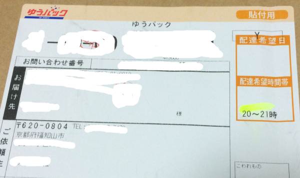 20時過ぎに届いた。なんで20時過ぎ?配達の人が20時過ぎの配達と指定されてますだってえ~?そんな風な注文したっけかな?メール確認してみると[配送方法] 宅配便[備考][配送日時指定:]18:00-21:00となっている。しかし配達された伝票を見ると20時~21時となってる。届くまでに誰かがミスタイプしたのかな?配達の人はいい迷惑だったと思う。お気の毒さまです。