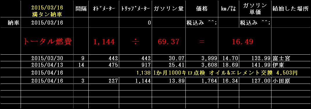 1ヵ月が経過したので点検に持って行った。オイルとエレメントは敢えて交換した。これで夏場も安心。慣らしの呪縛からのがれてアクセルも踏める(小市民なので踏まないけど)。当たり前だけど不具合はなし。次回は9月が6か月目になるのか。メモっておこう。帰りに満タンにしていった。伊豆よりは安いし2円割引の券を貰ったので目一杯満タンにして帰宅した。超満タンは危険だけどすぐに走り出して帰宅するころには超満タンではなくなっているかな
