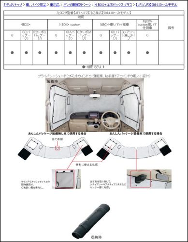 楽天ショップ Desir de vivre http://www.rakuten.co.jp/desir-de-vivre/ が送ってきたNBOX エヌボックス ホンダ純正 フプライバシーシェード(フロントウインドウ・運転席、助手席ドアウインドウ用/小窓付)【対応年式2014.4~次モデル】は「シティーアクティブブレーキシステム搭載車に対応した商品となります。」と謳ったてるにもかかわらず非対応品を送ってきたデタラメショップでした。その後のメールのやり取りも敢えてトンチンカンな回答を繰り返すばかりでノラリクラリと逃げ回る悪質なショップでした。楽天にもこんなショップがあるとはとっても残念です。それでもドラレコ付ければその部分は切り取る予定でしたから切り取る部分が増えたと思えばいいことですが。このショップの悪徳業者っぷりは忘れないことにしておきます(笑)とググタスに書いておいた(笑)電話はよこさず相変わらずトンチンカンなメールで回答してきただけ。 ご連絡ありがとうございます。Desir de vivreです。お電話につきましてはホームページ記載の通り電話サービスは行っておりません。当店ではご注文頂いた商品で手配致しますので備考欄などに記載頂きましても適合確認などは行っておりません。時間指定や領収書、宅配BOXなど配送に関することに対しては対応させて頂きます。適合確認は必ずご注文前にご確認お願い致します。また車体番号が必要となりますのでよろしくお願い致します。これだけだ。さ~てと。この事実をYouTubeにアップするのも面白いかも(^^♪