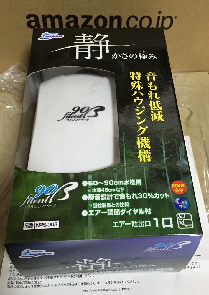 ヤフーのショップで買ったが配送はアマゾンからだった。最近はこういうパターンが多い。さっそく取り換えるが・・・ん?エアーの出が変わらない。おかしいな?フィッシュレットを分解して調べたらフィッシュレットから泡を発生させる部分がなぜか詰まっててエアーが出にくかったようだ。バラして調べるも詰まっている部分がわからない。細い棒で突っつきまわしたところエアーの通りが良くなった。しかし、詰まってたものがなんなのか不明。なにも出てこない。しかし直った。マイッカ。直ったし。試しに今までのエアーポンプを繋いだら正常になってるな、なんだかわかんないけど直っちまった。メデタシっていうか新しいエアーポンプはそのままお蔵入り決定。壊れた時の予備だな