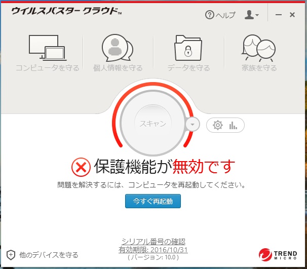HP Stream 11-r000のPCを立ち上げたら↑でた。再起動しても同じだ。ヘルプみたら・・・手っ取り早いのがアンインストールして再インストールだ。やったら直った。大丈夫かなぁ、ウイルスバスター・・・・。