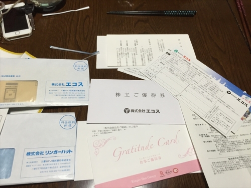 配当やら優待券が送られてくる季節だ。たいていのものは振り込まれるが企業によっては郵便局で貰ってくることがある。大金じゃないので面倒だし恥ずかしいし。皆振り込んでくれればいいのにねぇ。なんか手続きがあるのかな?エコスはお米と交換だ。