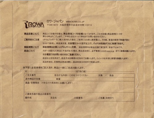 いつも捨ててしまうけどこの封筒には保証書みたいなことになっているのかしら?いつもゴミ箱ポイだ。残すのは面倒だし。壊れても安いものだからねぇ。もっとも初期不良にも当たらないし。マイッカ。