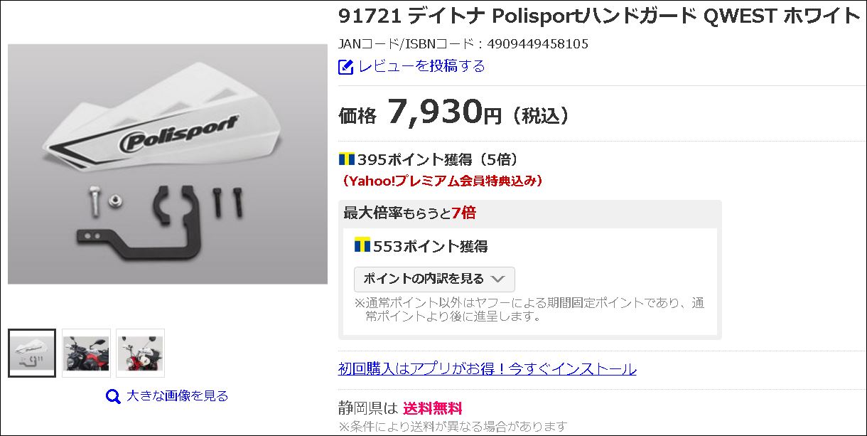 ナックルバイザーを注文した。YBR250のときはデイトナの大きいのを付けていたが所詮これは寒さ除けには役立たずということがはっきり分かった。ハンドルカバーに勝るものなし。今回はマジェスティSにハンドルカバー付けて走ると風圧でブレーキ握ってないのにブレーキレバーがハンドルカバーに押されてブレーキランプがついてしまうということがあるので予防するためにポチッとした。これがカバーの前にあれば風に負けてしまうことはないだろうと勝手な思い込みだ。なんとかなるっしょ。1年中付けっぱなしでいいようにちょっとおしゃれかな?色は白にした。大きいのはやめた。所詮効果ないし。風除け程度のものだ。