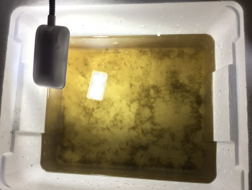 移したのは稚魚だけだ。親は頑張って外で越冬してもらう。風除けしたりしてできる限りのことはするつもりだけど外だ。越冬出来るかな?出来なければ☆だ。でも越冬したら来年は丈夫な子も作れるだろう。稚魚は体力ないし室内で過ごさせてあげようと思う。来年になったらH氏が欲しがっているので全部上げるつもり。H氏のようにたくさんのメダカの世話で明け暮れるのはまっぴらだしポリのタライの水をそのまま持ってきた。水質変わったりでショック与えるのは良くないし。徐々に水は交換していくつもり。