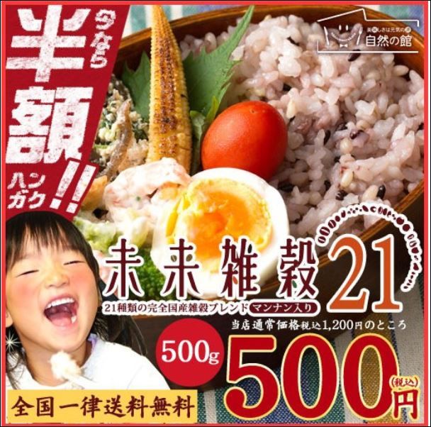 【予約商品】(4/13出荷予定) 完全国産未来雑穀21+マンナン500g 価格 500(円) × 1 = 500(円)小計 500(円)別途消費税 0(円)送料 0(円)決済手数料 0(円)クーポン利用額 -0(円)ポイント利用 -500(円)奥さんのポイント期限が近づいたので消化した。奥さんのリクエストだ。いつもお米にいろいろ入っている。たまに食べる白米がとってもおいしく感じる雑穀イラネ(爆)だけど奥さんは栄養がどうのこうのっていうけど・・・。