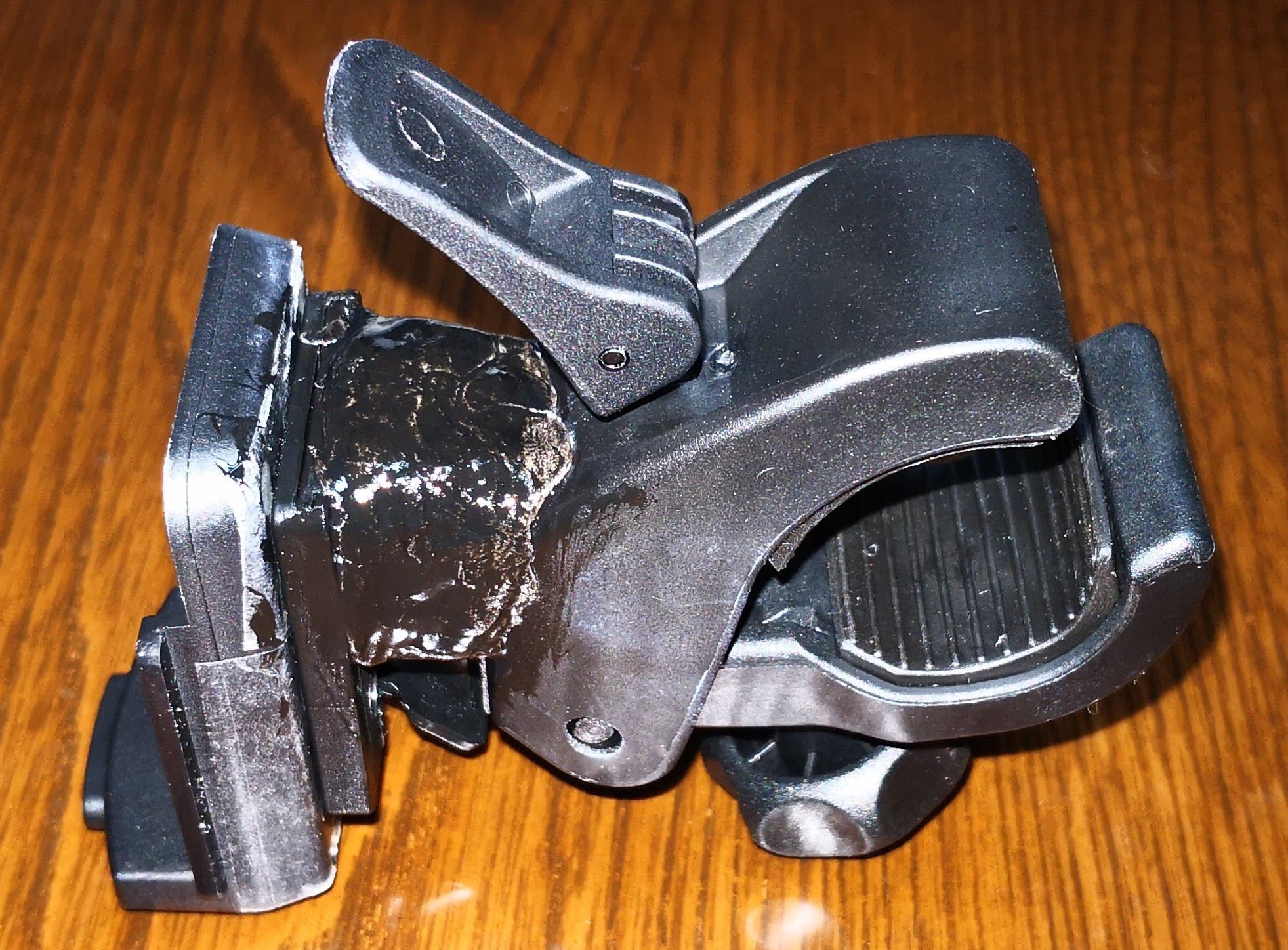 ナビはしっかり固定してると思ったらそうでもなかった。ハンドルバーがツルンとしているから回ってしまう。レー探はバッチリ。帰宅してからツルンとしたバーにグルーガンを塗りつけた。バーに溶けたスティックがいい感じでくっついている。基台を付けたら今度こそいい感じ。と、ここでおしまい。確認は今度走ったときでいいや。今日は疲れた。辺鄙な山の中を走って疲れた。ゴリラはケースの中に入っているのでやっぱり熱を持ってる。この季節で温かく感じるくらいだから真夏はキツイな。防水カバーなしも買おうかな。冷えるし音も聞こえるし。