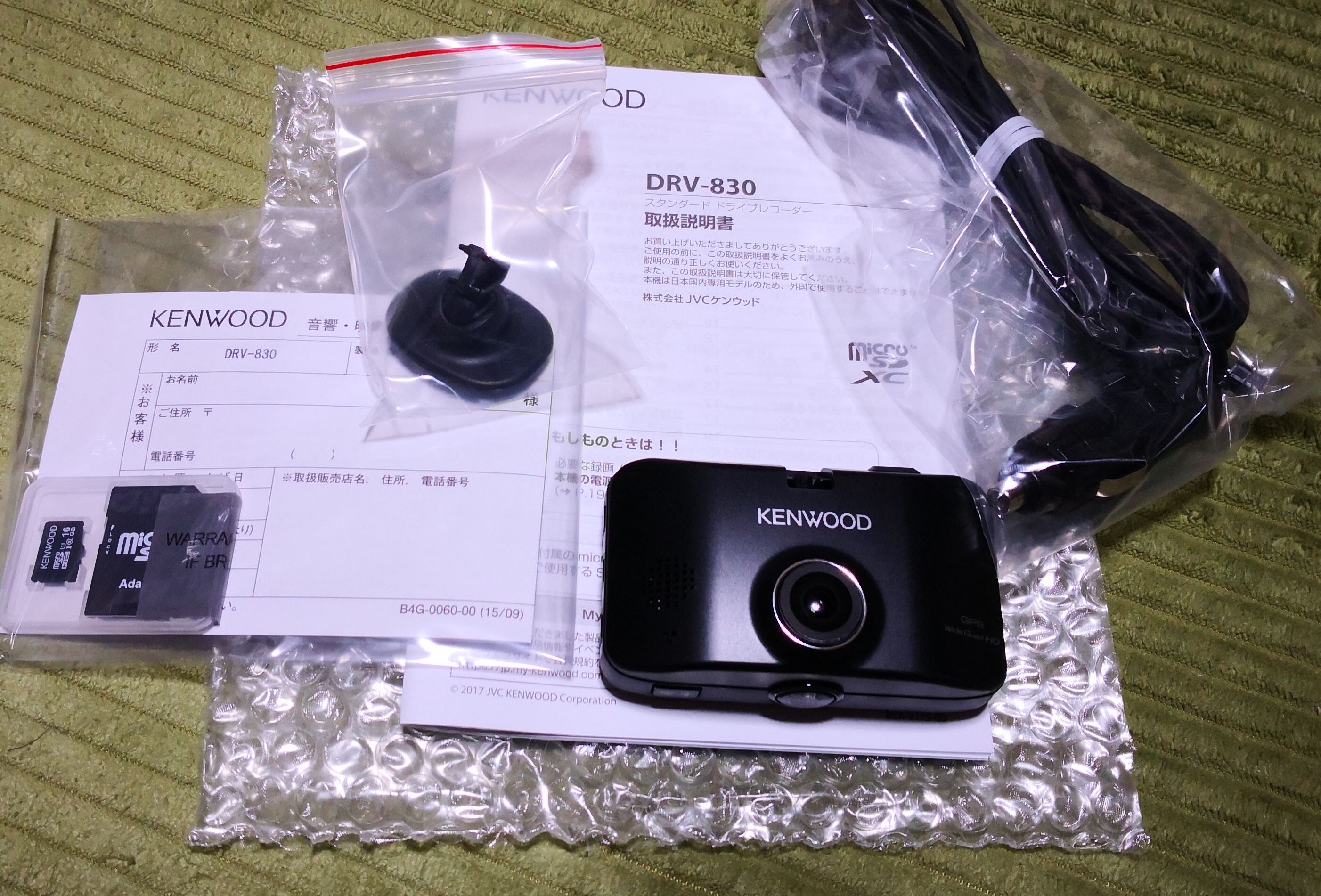 ケンウッドKNA-DR300が電池交換で復活したが同時にDRV-830を注文しておいた。そして届いた(^^♪ケンウッド 高精細370万画素録画 ドライブレコーダー HDR・運転支援機能搭載 DRV-83021,600円×1=21,600円商品の合計金額 : 21,600円送料:0円ポイント利用分:2,603ポイント合計金額 :18,997円通常ポイント:1,080ポイント期間固定Tポイント Yahoo! JAPANカード会員特典:216ポイント Yahoo!プレミアム会員限定!ポイント5倍!:864ポイント ソフトバンクなら ポイント+5倍キャンペーン:1080ポイント 【22:59まで】ハッピー2アワー ポイント5倍:864ポイント合計獲得予定ポイント:4104ポイントこれをフロントカメラとして使う。復活したKNA-DR300はリアカメラに左遷だ