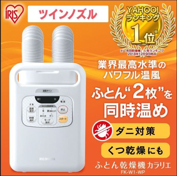 孫の誕生日プレゼントは送ったがクリスマスはまだなので長女へ連絡した。すると子供のは用意したので私が欲しいなだと了解だぜい。で、何が欲しい?Lineで連絡きたのがアイリスオーヤマの布団乾燥機だ。調べたらワンノズルでイマイチ。なのでツインノズルのを注文しておいた。ツインのほうがとってもいい感じ。ベストエクセルというショップで買ってみた。ここは初めてのショップだ。布団乾燥機 アイリスオーヤマ ダニ退治 カラリエ マット不要 FK-W1 布団乾燥機カラリエ ふとん乾燥機 衣類乾燥機 靴乾燥機 くつ乾燥機 ツインノズル:予約品12,070円×1=12,070円発送目安:8~14日以内に発送(休業日を除く)商品の合計金額 : 12,070円送料:0円ポイント利用分:5,503ポイント合計金額 :6,567円通常ポイント ストアポイント:120ポイント Yahoo! JAPANカード利用ポイント(見込み):120ポイント期間固定Tポイント Yahoo!プレミアム会員限定!ポイント5倍!:480ポイント ソフトバンクなら ポイント+5倍キャンペーン:600ポイント Yahoo! JAPANカード会員特典:120ポイント 5のつく日[アプリ利用で最大+4倍]:480ポイント 年末プレミアム会員セール Yahoo!プレミアム会員限定 対象ストア全品ポイント5倍キャンペーン:480ポイント合計獲得予定ポイント:2400ポイント年内に届くかな。