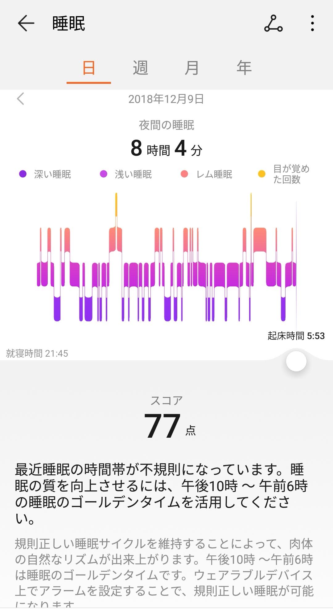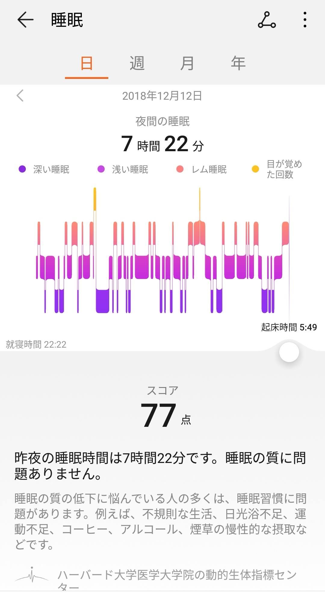 HUAWEI BAND 3 Proで睡眠について睡眠の質と評価が得られるというのでスイッチオンにしてたみた。といってもオンにしたのは夜中の1時すぎだ。そのせいか睡眠時間が短いことになっている。オイラは22時には寝てたけど。今夜は夜更かしするかもだ