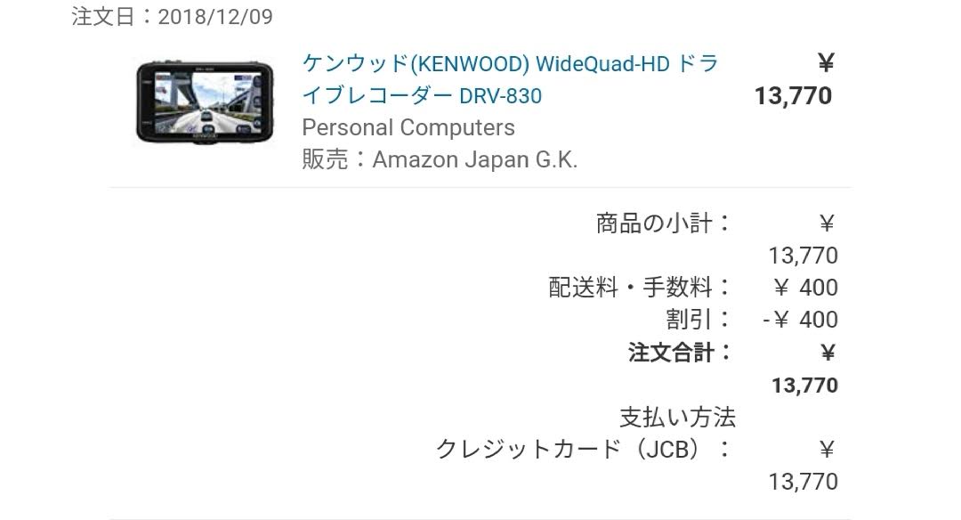 2台目のDRV-830だ。アマゾンが安売りしてることが掲示板に載ってたので速攻でポチッた。17000円ぐらいまで値下がりしてたがなんと13770円だ。すぐに売り切れてまた17000円に戻ったみたい。ラッキーだった。アマゾンはなんと19000円台になってる。ラッキーだ~。前と後ろをDRV-830にして右横はケンウッドKNA-DR300、左横は後ろに付けていたユピテルDRY-mini1Xにしようと思う。これで前後左右にドラレコが付くことになるぞ(^^♪