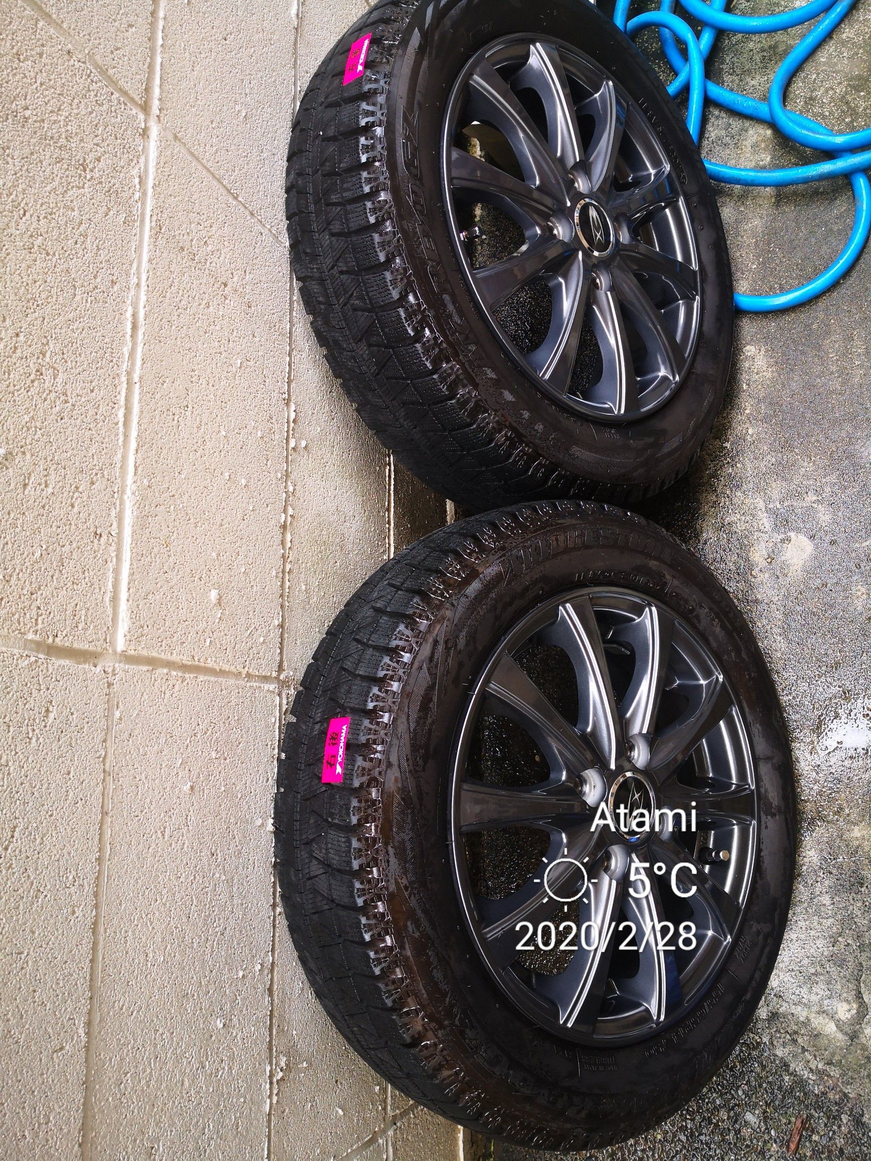 Honda Cars 中央神奈川小田原中央店さんで車検の際に夏タイヤに交換してもらった。車検時だったので格安だった。丁寧に右前とかシールも貼ってあって湯河原のエスポットみたいなデタラメなことはしない。あのスタッフはもういないらしい、クビになったのかしら当たり前だけど伊東のオートバックスもちゃんとやってくれる。デタラメは湯河原のエスポットだけだ。そのまま保管せずにまずは洗う。乾燥したところでホイルにはプレクサスを塗って保管だ。外は寒いや。お湯で洗う(^^♪細かいところまで丁寧に洗った。ナットも洗って乾燥させたら556をスプレーして保管だ。556だとダメなのかな?マイッカだ