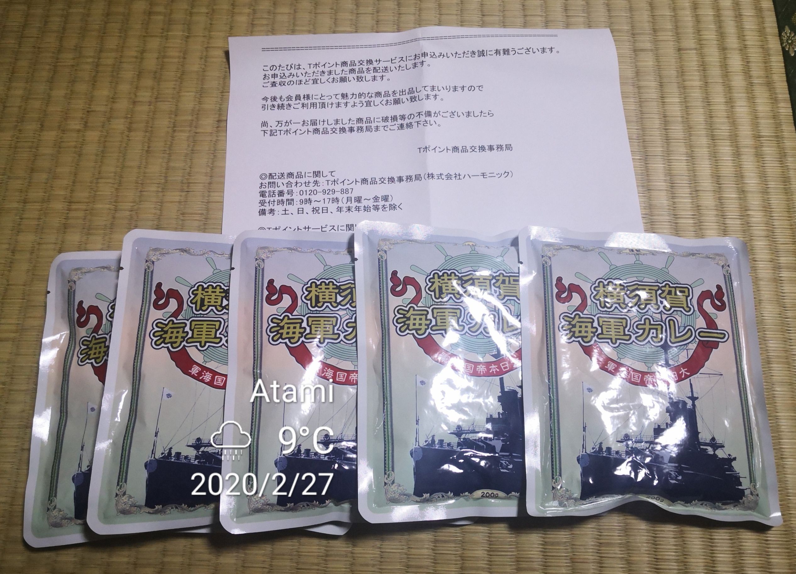 先日、Tポイントで買ったはずのカレーを昼に食べてみた。そしたら美味い。さっそくレビューを書こうとしたが見当たらない。おかしいな、Tポイントの期限が迫ってきたから買ったのに購入履歴にないや。たしかにTポイントで買ったのに。届いたときに書かれてた用紙はもうないので拡大してみた。するとTポイント商品交換サービスと書かれてる。そうか、サイトが違うのか。ならば交換履歴を調べようとしたがオイラが間抜けなのか見つからないや。マイッカだ。しかし、レトルトカレーとしてはなかなか美味かったな。