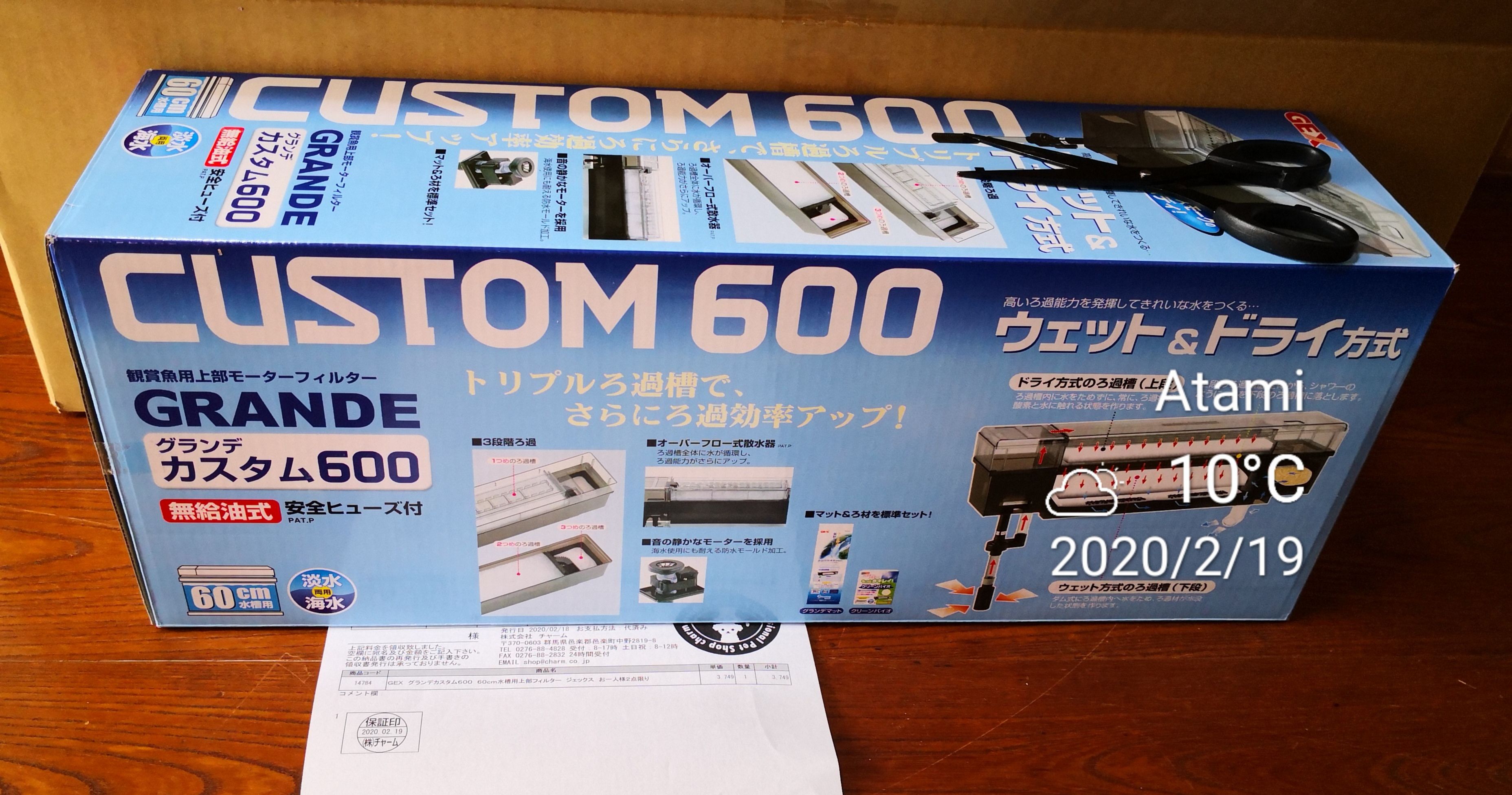 玄関の水槽のろ過装置をパワーアップさせてみたくてグランデ カスタム600をアマゾンで買ってみた。いつもならヤフーショップだけど3000円分のギフトがあるから多少高くてもいいかなと。まずは買う前にアマゾンのカードを申し込む。年に1回アマゾンで利用すれば年会費は無料みたい。なんだかんだと年に数回は買うから無問題だな。蹴られることはないと思うけど審査は通ったかなそしてポチッた。ジェックス グランデ カスタム600販売: charm(チャーム) | 総合ペットショップ¥ 3,749商品の小計: ¥ 3,749配送料・手数料: ¥ 730割引: -¥ 187注文合計: ¥ 4,292支払い方法 Amazonギフト券: ¥ 3,000クレジットカード(Amazon テンポラリーカード クラシック):¥ 1,292