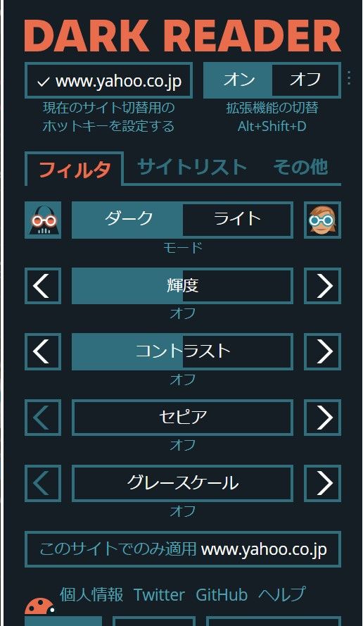 chromeにダークリーダーという拡張機能を入れてみた。以前使ってたのは写真まで反転してしまい使いづらかったけど今度のは今のところそういうところもなくいい感じだ。目に優しいのは助かる。