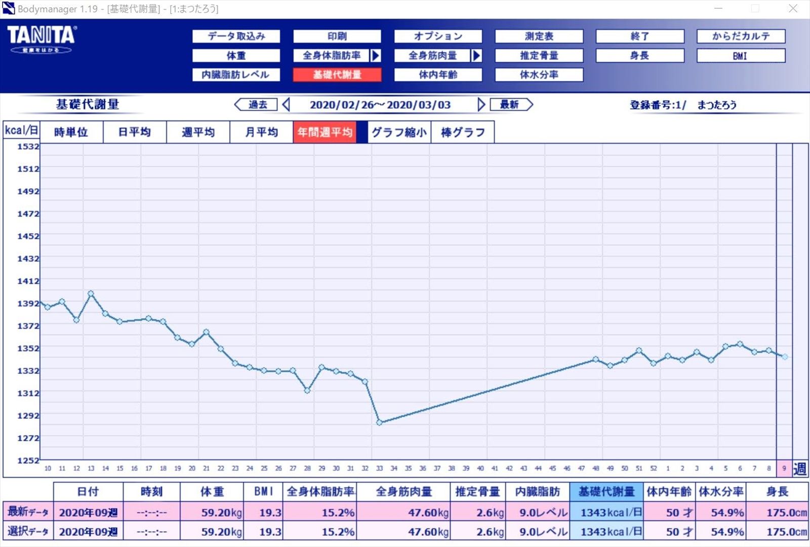 1年前に糖尿病と言われHgA1cを9.8からついに6.2まで下げたけど、ほとんど炭水化物を摂らないインチキ方法でクリアさせたまだ朝だけ薬を飲んでるし。薬飲まずに6.2以下を維持できたらいいけど、どうなりますやら。久しぶりにグラフを見てみた。少しSDカードのデータが飛んでるけど変化は見えてる。基礎代謝。体重。内臓脂肪。推定骨量。全身筋肉量。全身体脂肪率。体水分率。体内年齢。いいんだかわるいんだか。