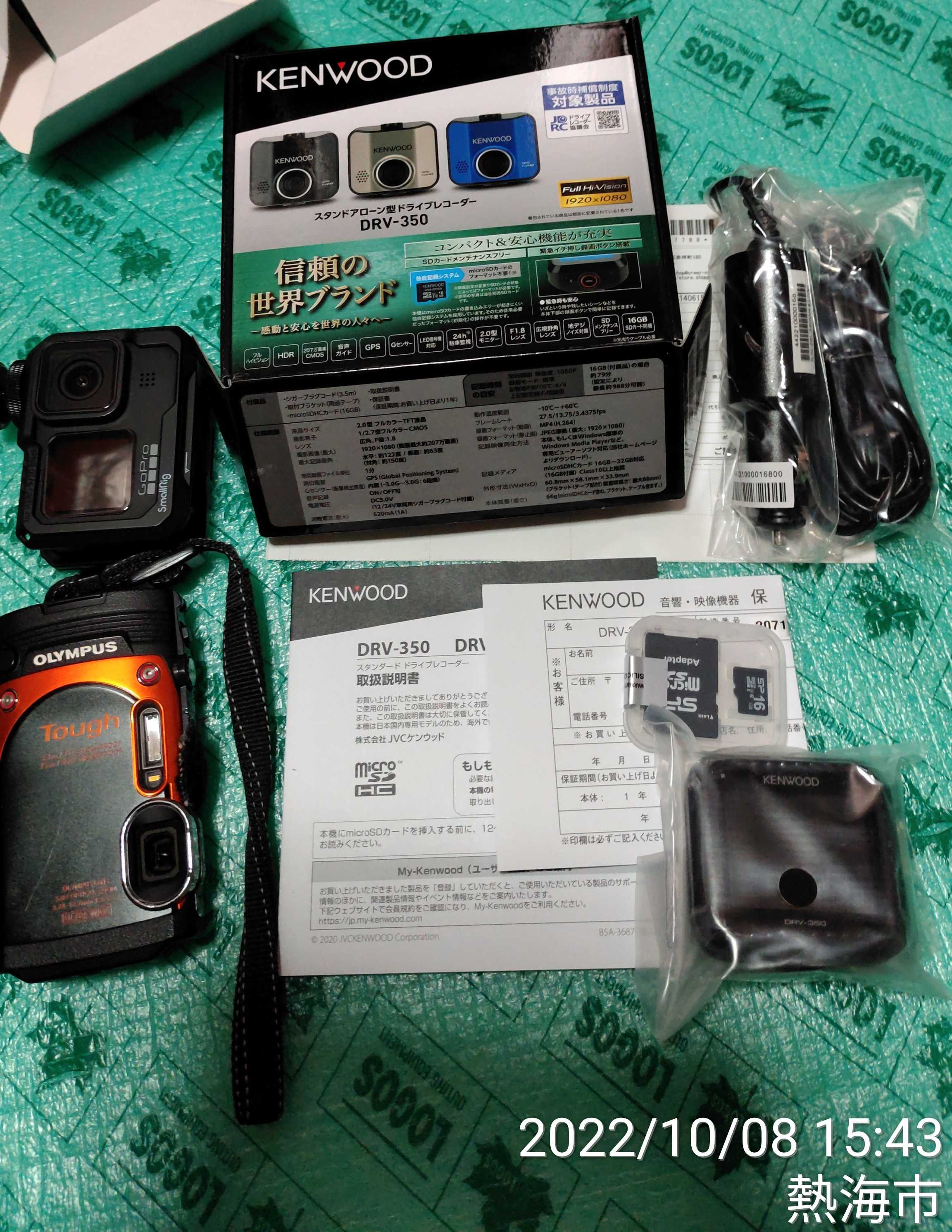 ケンウッド DRV-830がひとつ壊れたので今度はDRV-350にしたこれもスーパーキャパシタを使っている充電池使っているタイプよりはマシだと思っているまぁ普通に使えるだろう前後2カメラのドラレコがブームだが片方が壊れると共倒れになるからキライだ別々のほうがリスクは少ないと思ってるそれにしても16Gのメモリカードなんてイラネもっと大きいか無しにして価格を下げてくれ~い