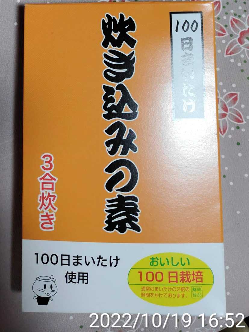 10月4日に群馬まいたけセンターで買った土産の100日まいたけ 炊き込みの素を食べたうん、香り良しいつものことだがご飯少なめ、野菜多め、ヘルシーだな