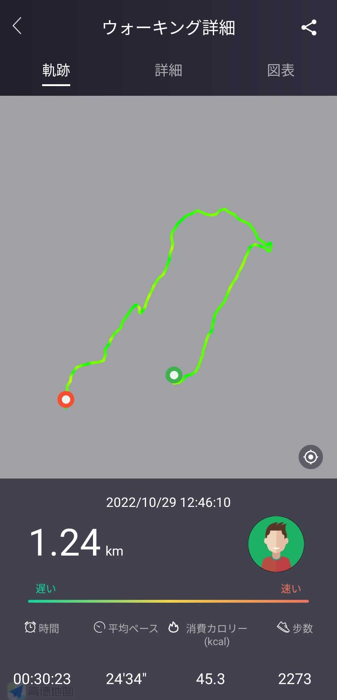 鋸山のダメージがまだ残ってるけど歩いた今度のスマートウオッチもウオーキングの記録が残せるというひとでセットしてみたが途中でランニングにセットされてることがわかったので取り消して再セットして歩いた油断すると間違えやすいアプリだなスタートと終わりが別の地点になってるのは仕方ないか