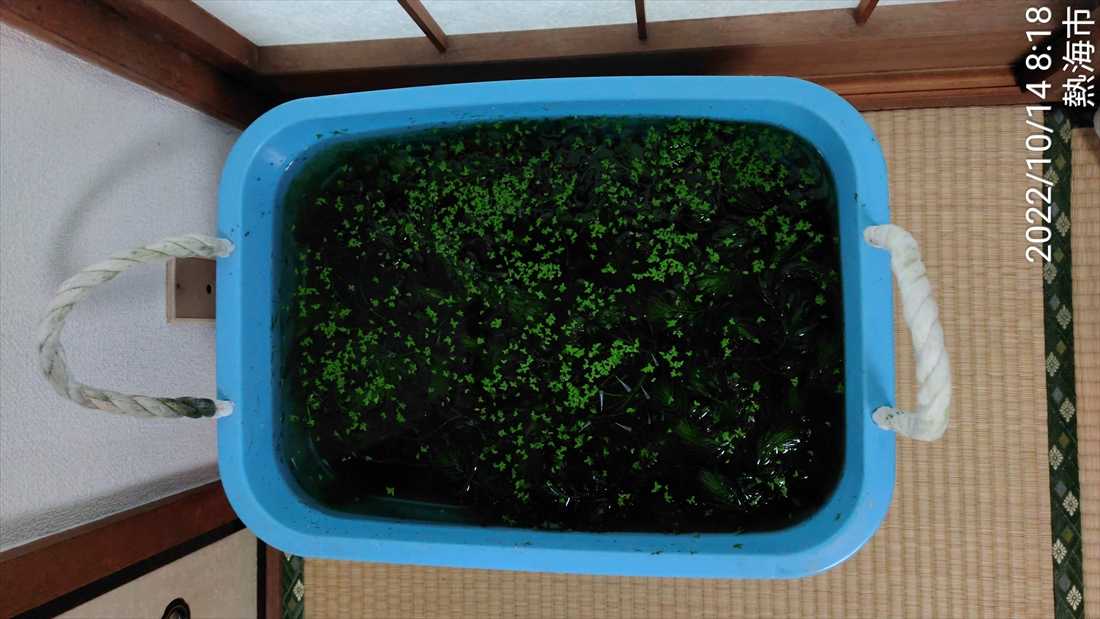メダカの越冬用に柿の葉が良いと書かれていたのでオイラも真似した注文したのはヤフオクで120枚1000円、クーポン使えて900円で買えた安いんだか高いんだかわからないが相場みたいすると100枚オマケして130枚にしてくれた出品者に感謝だ次回もこの人から買おうで、届いた柿の葉は万一の為にも消毒とか農薬があったら困るから念入りに処理だということで熱湯消毒しておく次は水道水でアクを出しておく水道水を入れて一晩経ったら入れ替えて繰り返すタンニンが越冬するメダカの消毒とかにもなる?のでやりすぎはダメかな3回くらいにしておくか11月までには十分間に合うと思ったら仏壇に柿がある!?訊いたら婿殿の実家から貰ったんだと美味しくなるまで木に付けておくと猿が全部食べてしまうんだとなんだよ、柿の葉あったじゃん買わなくて良かったのに~、、、、残念