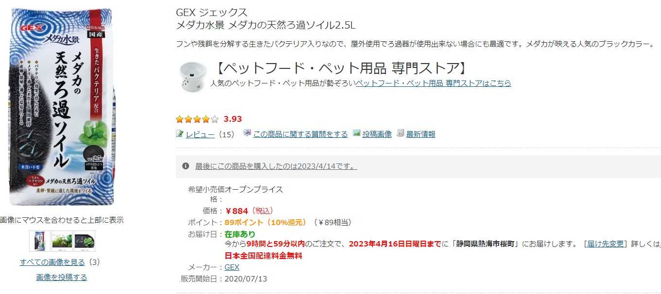 ヨドバシドットコムさんでメダカの天然ろ過ソイル2.5Lを買ってみた初めて使ってみる贅沢だと思ってオイラは安い大磯ばかり3年前くらいに外の60センチ水槽に赤玉土入れたけど安いのだからとっくに砕けてドロになっているけど、ほったらかしだ水抜いて足すだけ金魚は強いな乱暴に水抜いて水道水を足すだけ長生きだメダカに良さそうなので使ってみる3日間で大きいメダカが3匹★になった寿命かなみんな元気だからそう思うことにしているしかし残念だ