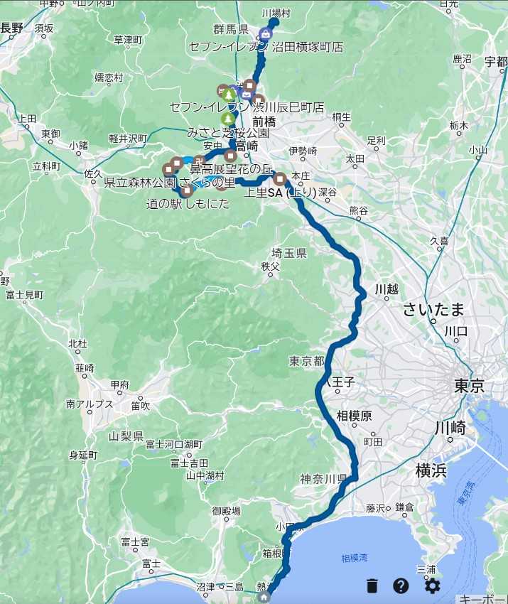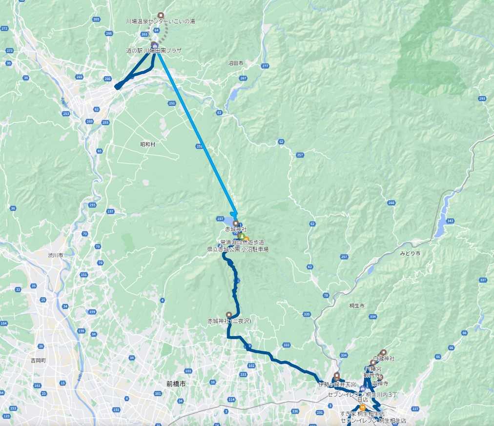 急いで支度して出かけた忘れ物は?ウオーキングの靴を忘れた^^;まぁたいていなにか忘れるからマイッカだ群馬県でも目指すかナビを適当にセットして走るGoogle Mapも適当にセットして行く途中で寄り道したけりゃグーグルマップでいいや高麗神社春日神社ニューサントピア梅の湯で温泉に入ってねぐら探して寝る2023年05月08日 13:17 - 17:15、135.53 Km 3 時間 57 分、4ハイタッチ、コレクション2個を獲得、バッジ36個を獲得、テリトリーポイント370pt.を獲得