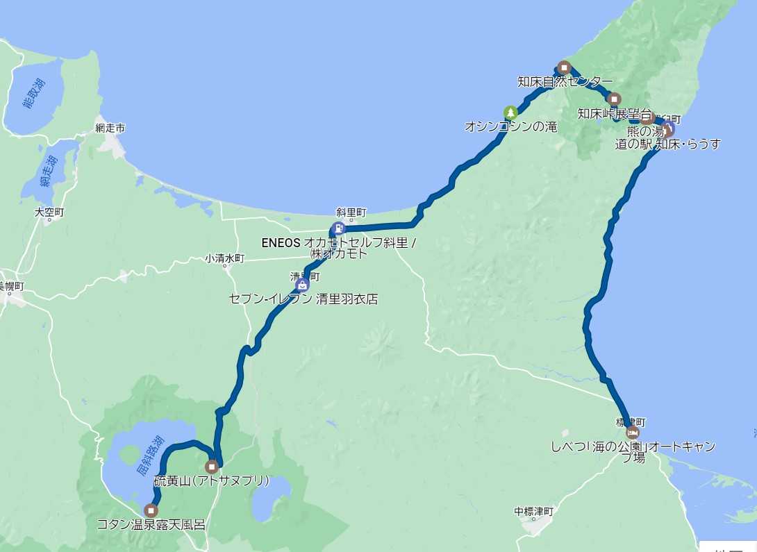 しべっ 海の公園で起きた熊の湯知床羅臼ビジターセンター羅臼国後展望台知床羅臼ビジターセンター知床峠展望台知床自然センターオシンコシンの滝硫黄山コタン温泉露天風呂ここで寝た