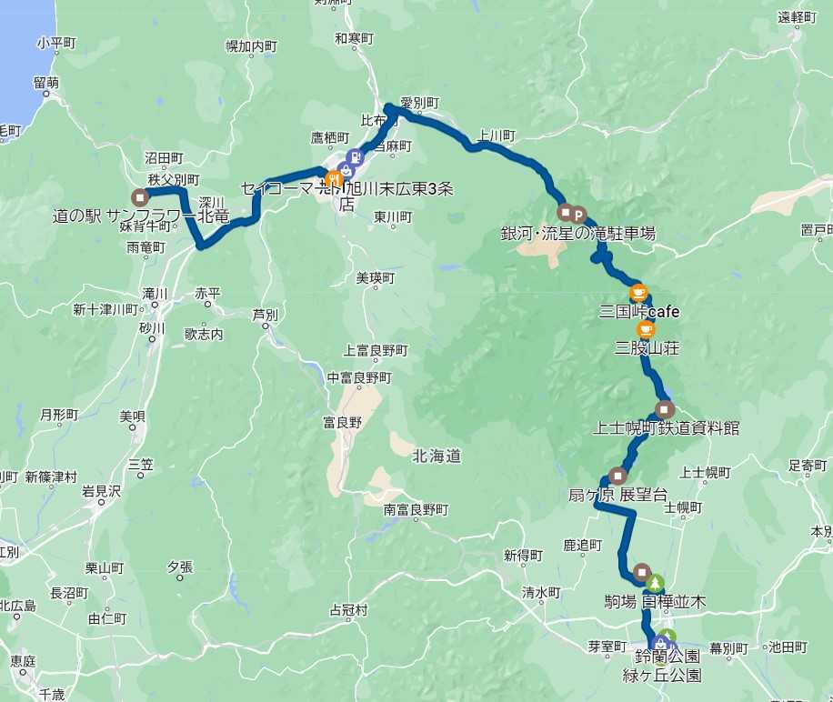 駒場 白樺並木十勝牧場展望台扇ヶ原展望台上士幌町鉄道資料館ひがし大雪自然館三股山荘三国峠大雪山層雲峡・黒岳ロープウェイ道の駅 サンフラワー北竜
