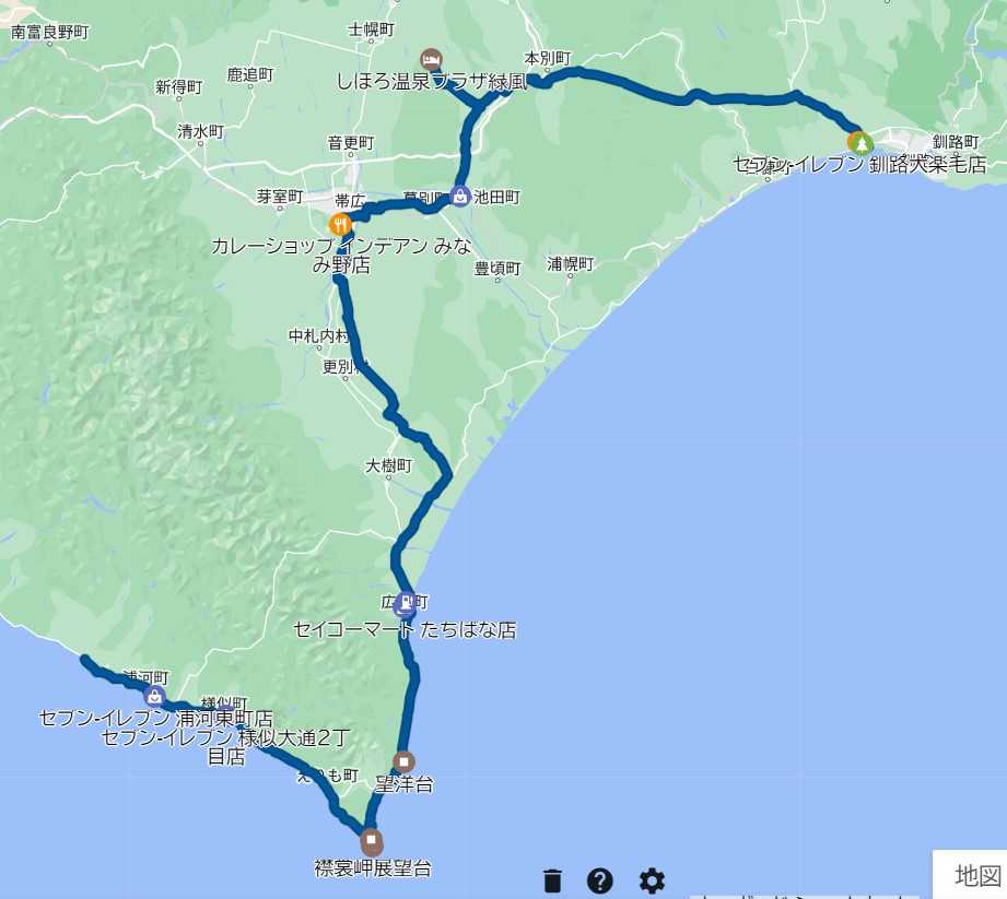 寝すぎて早く目が覚めてしまったので走り出すまずは20年ぶりの襟裳岬だ道路が良くなっててビックリ変わりすぎは20年という月日だな昨日はずっと雨の中を走ってたが襟裳岬までは霧の中みたいな感じしかし襟裳岬で晴れた施設もいろいろ変わったようなオイラの記憶のずれがはなはだしい黄金道路海岸線を走るとても景気の良い道路のはずが散々崩れるからだろう長いトンネルで面白みが半減してた望洋台カレーショップインディアンでインディアンの辛口でハンバーグをトッピング辛かったけどとても美味い流行ってるオイラはギリPに停められて席も座れたたちまち順番待ちが出来てたしほろ温泉プラザ緑風黒いモール泉先日、入湯したところよりは薄いけど50度の源泉を加水して冷まして入れてる加温ではなく水で減温しているてことは色も薄くなるのは納得だなかけ流しでろ過なし良いことだオーバーフローもちゃんとしてそうセブンで弁当買って夕飯にしようかな念のためにグーグルマップで調べたら100メートルもは離れてないところに豚丼のぶた福があった評判良いのでそこに行くミックスの豚丼にしたご飯は少なめにしてもらったとても美味い評判どおりだなそして今夜のねぐらは簡単に見つけられた(^^♪