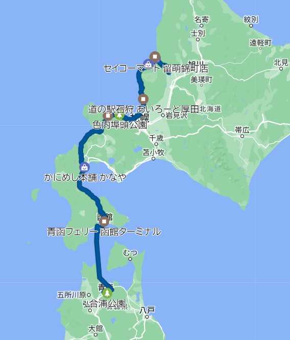 波灯の女黄金岬海浜公園増毛郡総鎮守 厳島神社道の駅石狩 あいろーど厚田道の駅 スペース・アップルよいちかにめし本舗 かなや青函フェリー 函館ターミナル合浦公園