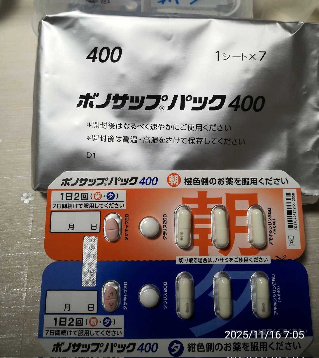 先日、奥さんが病院で胃カメラ飲んで診断なんと奥さんのおなかにピロリ菌がいるんだとということで薬を飲むことになった朝夕の食後に飲むようだこれで除菌できるらしい
