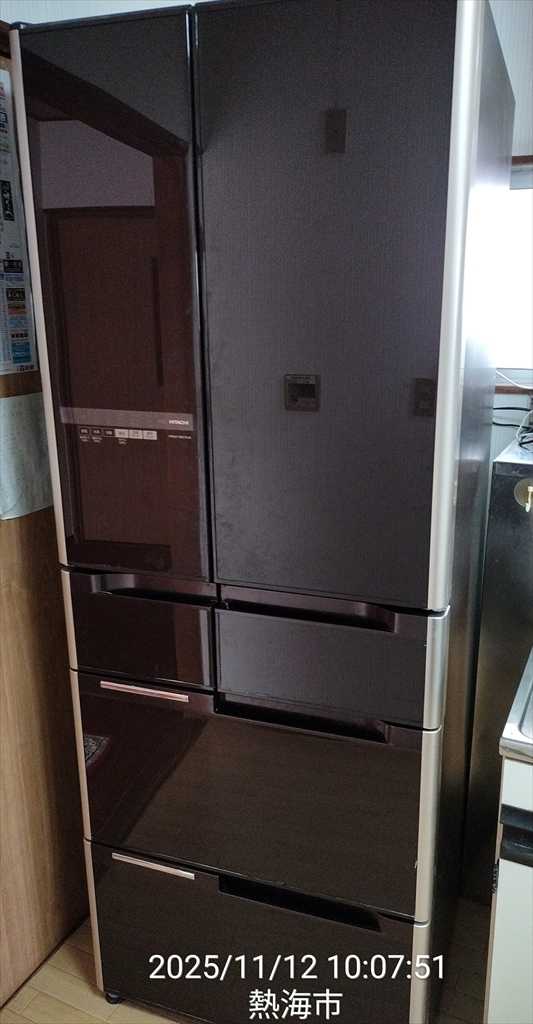 野菜室の野菜が凍るようになった日立の冷蔵庫12年で故障か修理ではなく買い替えを奥さんは希望ということで東芝の冷蔵庫にした少し小ぶりだこれまで使ってた日立の冷蔵庫はR-C5700 全体容積は565Lだ横幅は685ミリ新しいのは510Lで幅は650ミリで横幅が3.5センチ少ない容量は510Lで少ないけど奥さんは電気代もかかるしこれくらいでいいという色も気に入ったようだ本日届いた古い冷蔵庫の中身を出して置いたら汁が漏れたらしく畳を汚した染みついた、落ちない、奥さんが置いたもの仕方ないわ~とオイラがやらかしてたらドヤされてたよ搬出、搬入、設置してからの位置や傾きの微調整30分もかからなかったかな