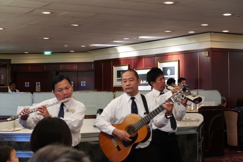 船の中では生演奏や風船体験や社交ダンスがあったり。
