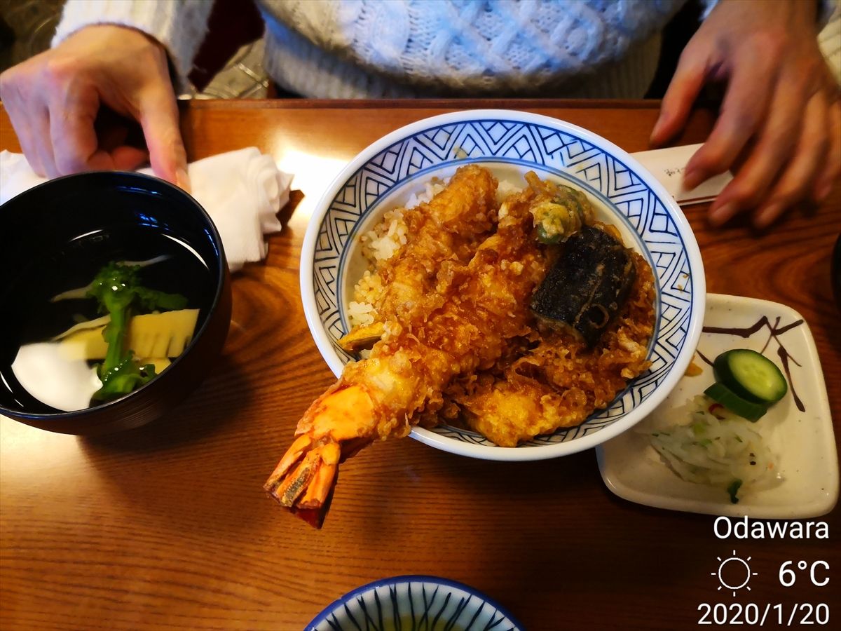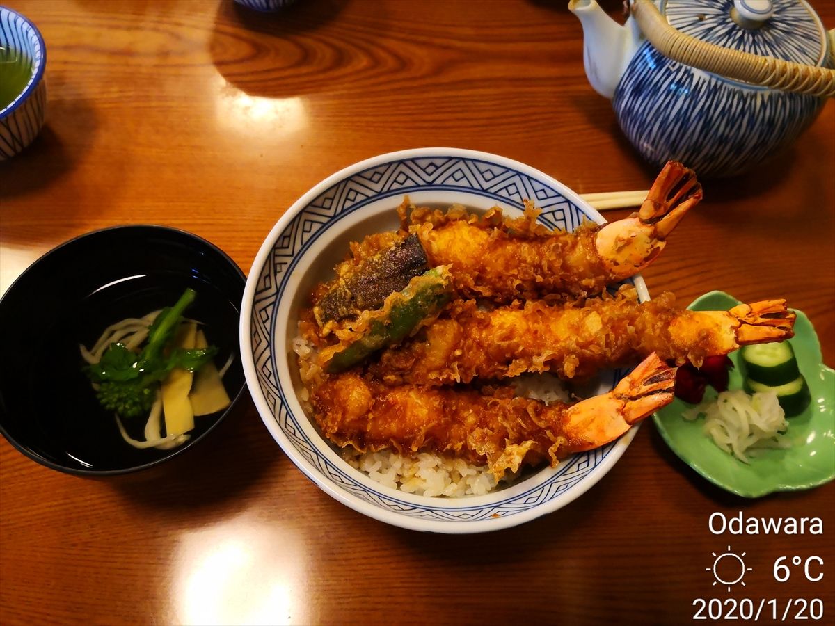 オイラはエビ3匹のエビ天丼、奥さんと次女は天丼になった。