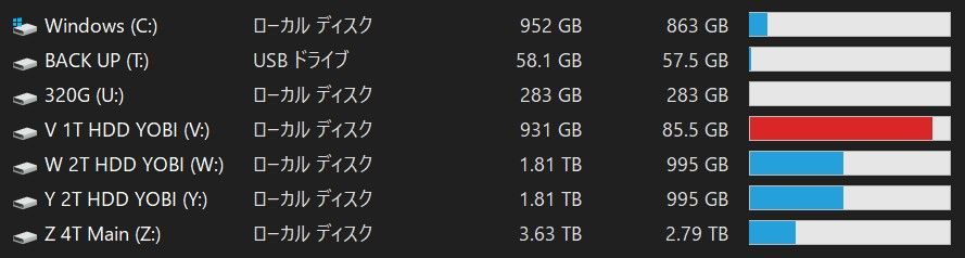 まだ使ってない4TのHDDはXにするつもりなので空き番だ。