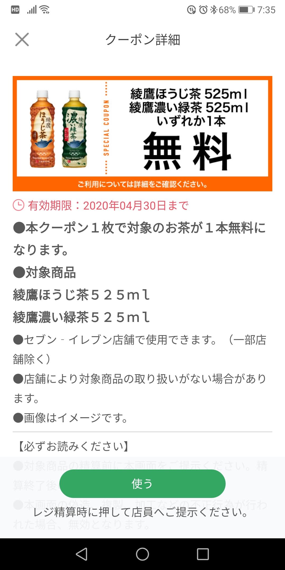 そしてセブンのアプリでも1本貰えるらしい。