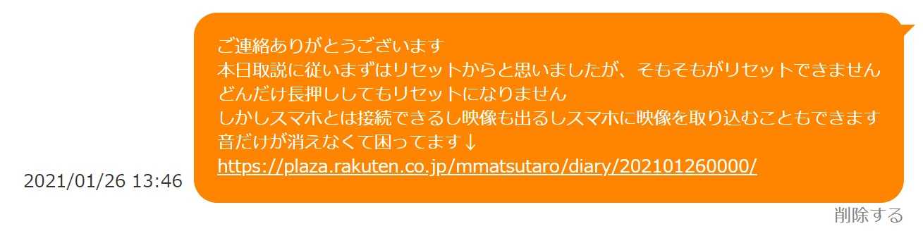 またショップにここのURL貼り付けて連絡してみようと思う