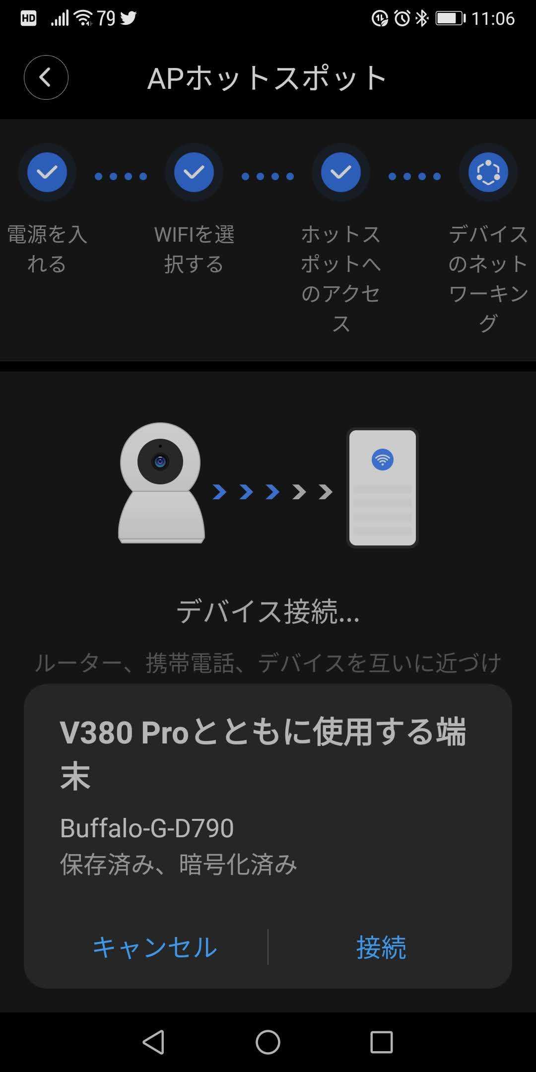 気を取り直してスマホのアプリでカメラとの接続を試みる